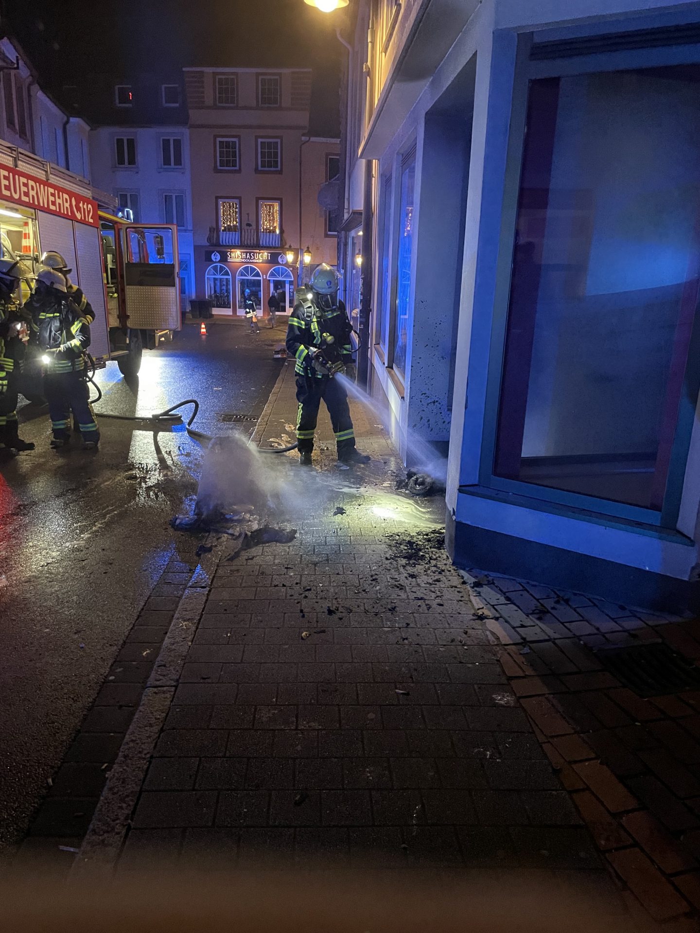 In den frühen Morgenstunden des 01. Januar, wurde die Feuerwehr zu einem Wohnungsbrand in die Wittlicher Innenstadt alarmiert. Vor Ort brannten im Windfang eines Friseursalons mehrere Mülltonnen in voller Ausdehnung. Durch die Hitzeentwicklung sind die Glasscheiben der Eingangstür geborsten. Hierdurch wurde das gesamte Ladenlokal, sowie Teile des Treppenhauses verraucht. Durch die Feuerwehr wurden die Mülltonnen abgelöscht und umfangreiche Lüftungsmaßnahmen durchgeführt.