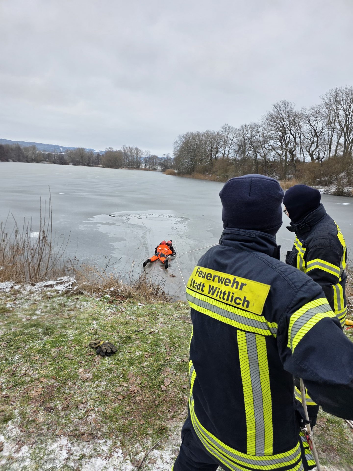 Am Sonntagmorgen, den 11. Januar 2026, führte die Feuerwehr Wittlich Einheit 1 – Stadtmitte eine Übung zum Thema Eisrettung durch. Übungsort war der Sterenbachsee, der bei winterlichen Temperaturen realistische Bedingungen für das Szenario bot.