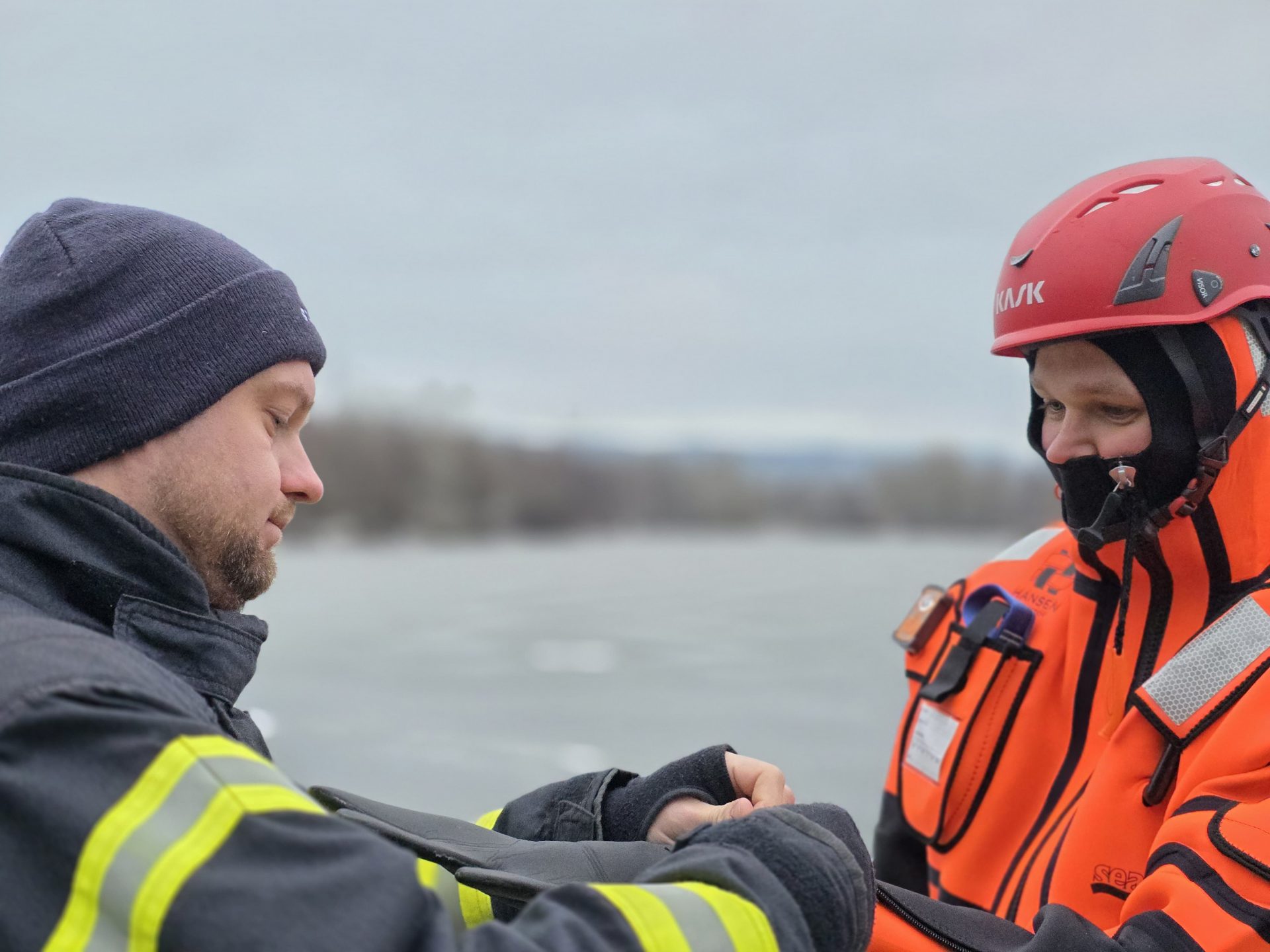 Im Fokus der Ausbildung standen verschiedene Rettungsmethoden zur Menschenrettung aus eingebrochenem Eis. Besonders intensiv wurde der Einsatz des neuen Eis- und Wasserrettungsanzugs trainiert. Die Einsatzkräfte konnten hierbei erste wichtige Erfahrungen sammeln. Schnell zeigte sich, dass mit der neuen Ausrüstung eine Rettung deutlich zügiger und zugleich sicherer durchgeführt werden kann.